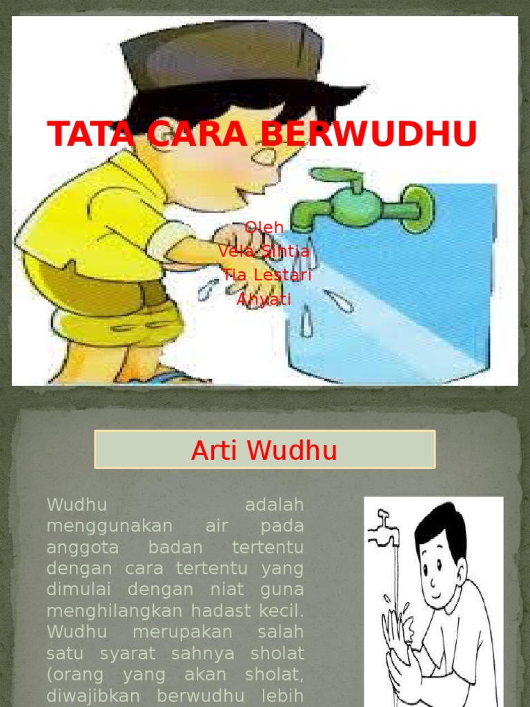 Tata cara berwudhu slideshow 290596 by guest39763. Pada dasarnya tata cara mandi wajib bagi pria dan wanita hampir sama. 0%0% found this document useful, mark this document as useful. Tuangkan air dengan tangan kanan ke atas tangan kiri, kemudian basuh kemaluan. Nawaitul wudhuu'a li raf'll hadatsil ashghari fardhal lilaahi ta'aalaa. artinya: Cara mengatasi jaringan lemot pada jaringan wifi id. Dalam tata cara berwhudu terdapat sebuah rukun yang mana kita harus mengerjakan hal tersebut. Saat berwudhu harus melakukan rukun wudhu, jika tidak dilaksanakan maka menyebabkan hukum wudhu tersebut tidak sah. 8 cara berwudhu yang benar sesuai dengan ajaran rasulullah dengan diiringi do'a sebelum dan sesudah berwudhu, dan do'a setiap gerakan 8 cara berwudhu yang benar beserta doanya. Berwudhu seperti tata cara wudhu untuk salat. Tata cara berwudhu dengan benar beserta do'a ini adalah pratik berwudu semoga bermanfaat. Tata cara berwudhu's main feature is applications on how to perform ablution. Sudah tahu tata cara berwudhu yang benar dan bacaan wudhu yang benar?